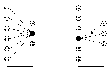 Ein Neuron wird durch seine Vorgänger aktiviert und gibt seine Ausgabe an alle seine Nachfolger weiter. Dadurch ergibt sich ein Informationsfluß von der Input- zur Output-Schicht. Dabei sind alle Neuronen mit Ausnahme der Input-Schicht aktiv. Die Neuronen der Input-Schicht reichen einen angelegten Eingabewert lediglich durch.